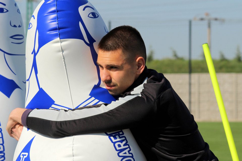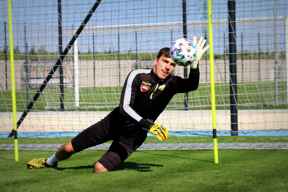 Martin Jedlička, Adrián Slančík and Benjamin Száraz in training with goalkeeper coach Martin Raška at MOL Academy.
