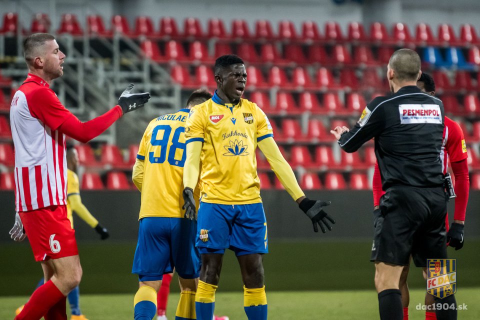 Sárga lapos figyelmeztetésben részesül Blackman (FK DAC Dunaszerdahely 1904).
