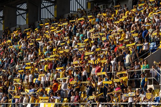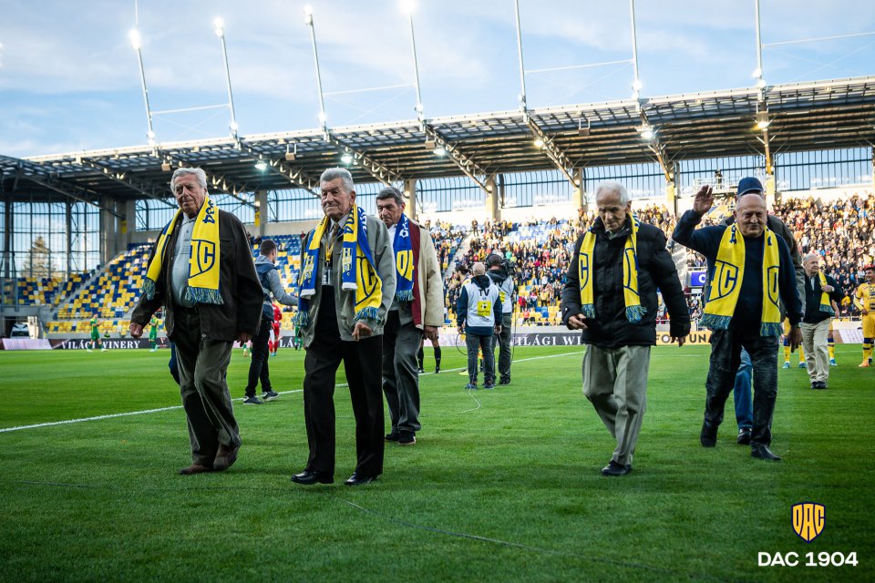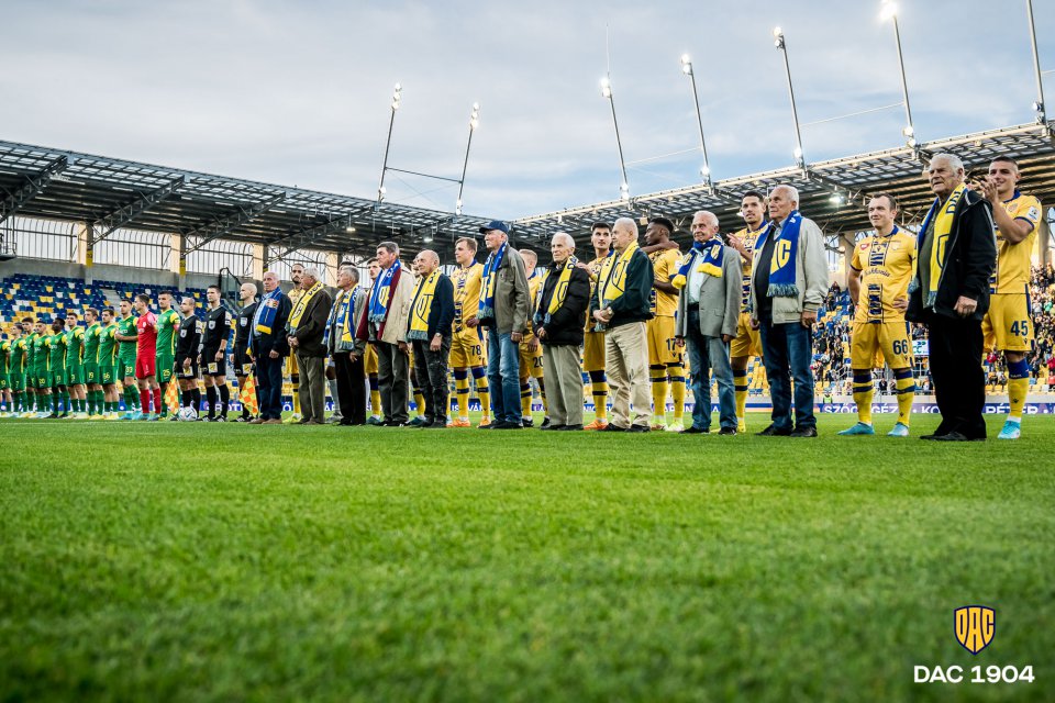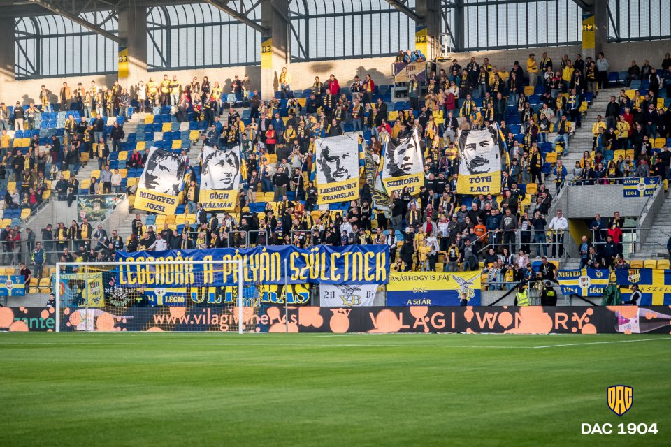 Legendák a pályán születnek  hirdeti egy B-közép elé kifeszített felirat, a  DAC 5 egykori legendás játékosának arcképével. Pillanatokon belül kezdödik a mérkőzés. Tartrsanak velünk!