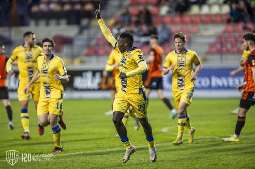 A hazaiak narancssárga mezben és fekete nadrágban, mi talpig sárgában jöttünk ki az öltözőből. A pálya talaja hagy némi kívánnivalót maga után, de emiatt nem marad el a mérkőzés.