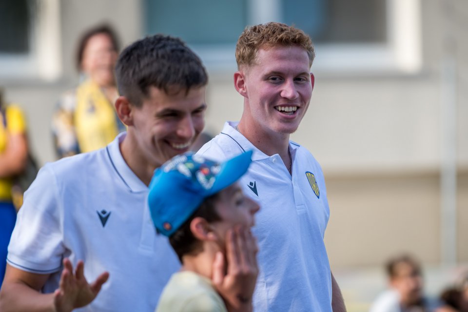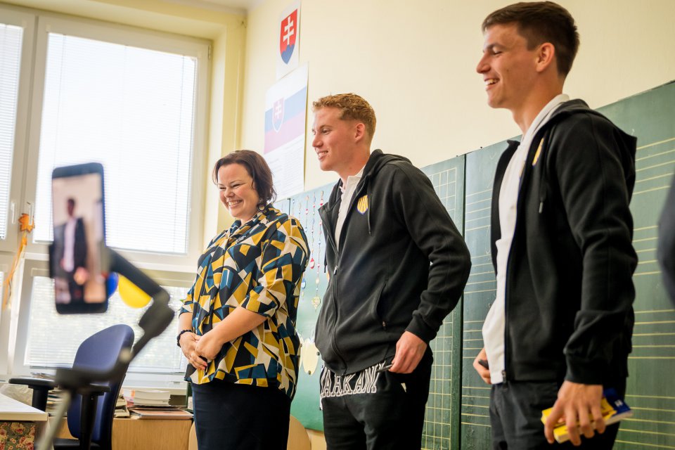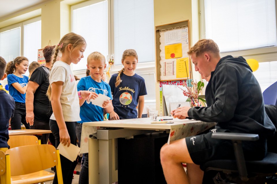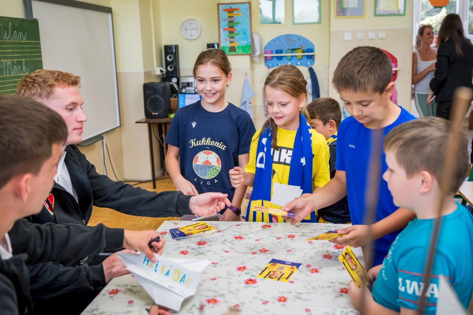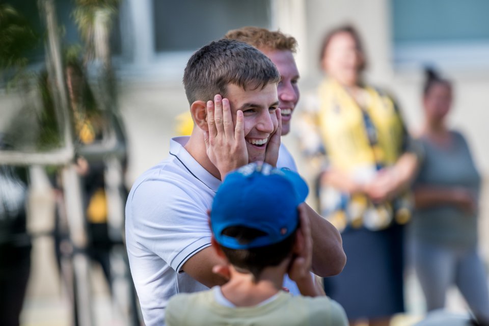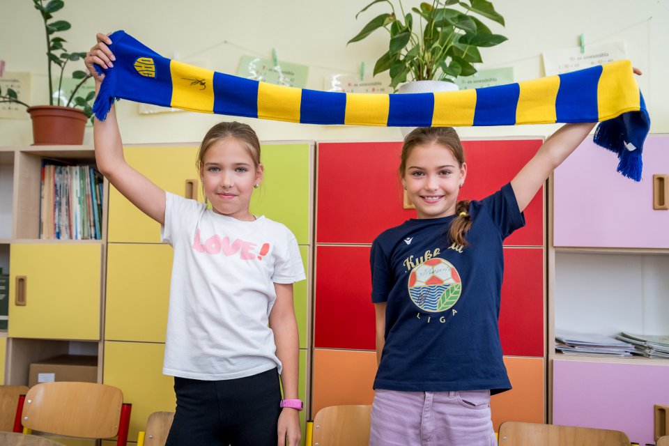 Márk Csinger a Milán Vitális zavítali vo štvrtok poobede do Čenkoviec, kde sa v rámci projektu Poďme spolu na DAC! stretli so žiakmi miestnej ZŠ s VJM. A my sa už teraz tešíme na bedeľu, kedy deti privítame v MOL Aréne na zápase proti Podbrezovej. Autor: Lelkes Ernő.