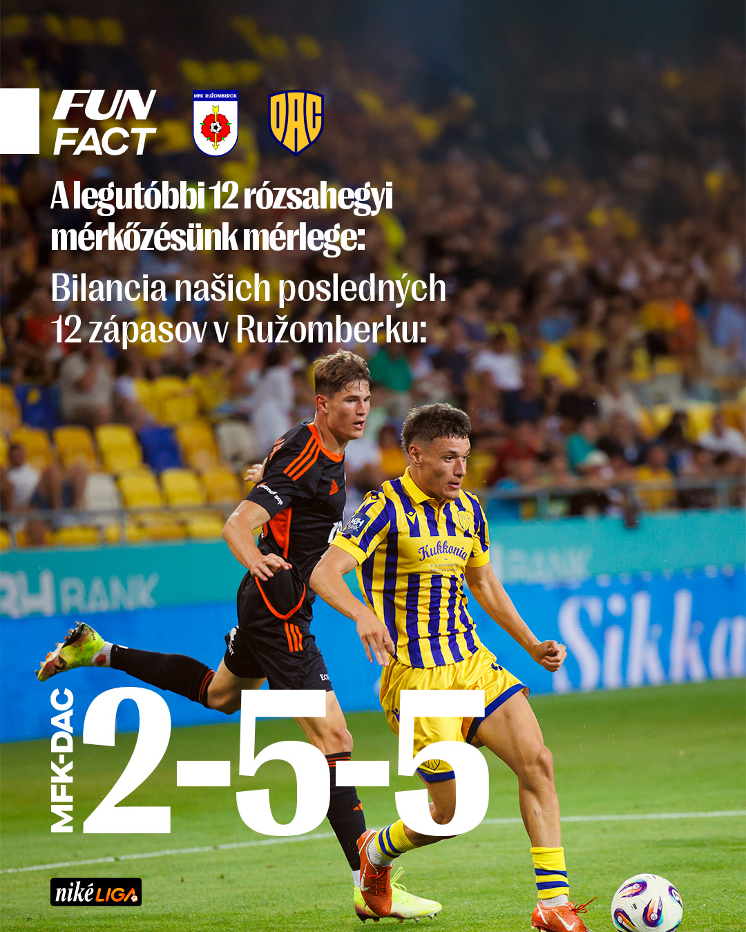 Nadviazať na posledné tri víťazstvá bude cieľom žlto-modrých na Liptove, v poslednom zápase pred novembrovou reprezentačnou prestávkou. Stretnutie Ružomberok-DAC má výkop v sobotu o 15.30 h.