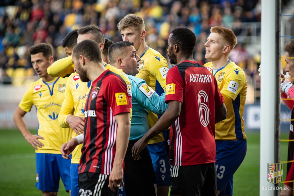 Žltú kartu dostáva Blackman (FC DAC Dunajská Streda).