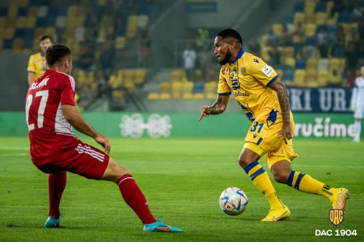 Rozhodca nepridal k prvému polčasu ani jednu minútu, a tak tu máme jeho koniec. Gólom Krstovića sme ho vyhrali 1:0 a keďže sme jednoznačne lepší, tak je naše vedenie spravodlivé. Tento zápas si užívajú hráči aj fanúšikovia na tribúnach, je to veľká oslava futbalu. Oslávme ju napríklad aj ďalším gólom. DAC do toho!