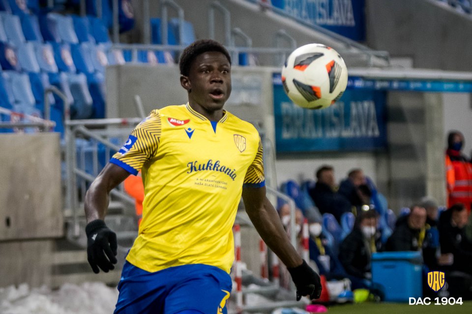 Striedanie v tíme DAC 1904 Dunajská Streda: z ihriska odchádza Sharani, prichádza Andzouana. Zranený by však Sharani nemal byť.