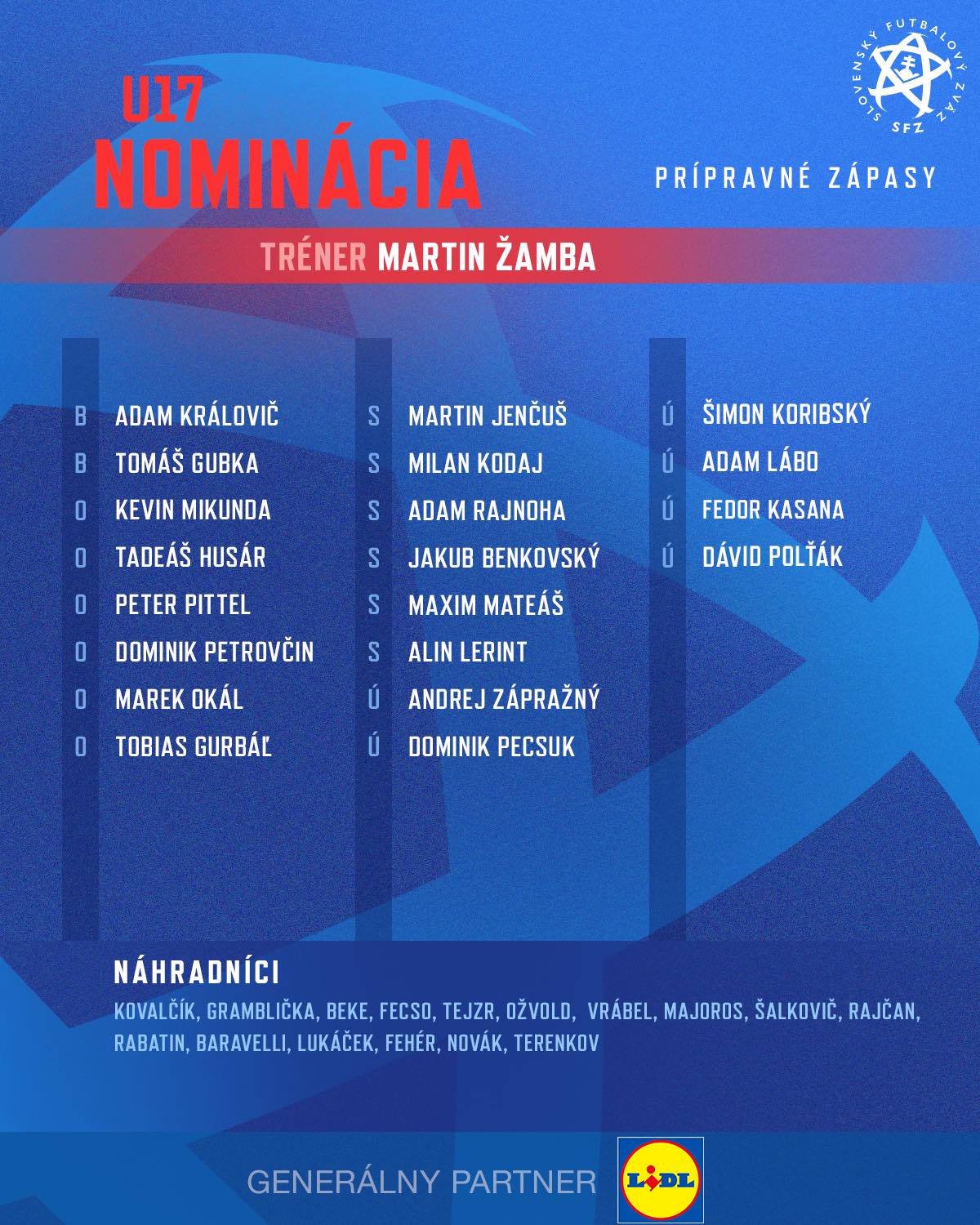 Tréner reprezentácie do 17 rokov Martin Žamba nominoval 20 hráčov na dva medzištátne prípravné zápasy v Gruzínsku.