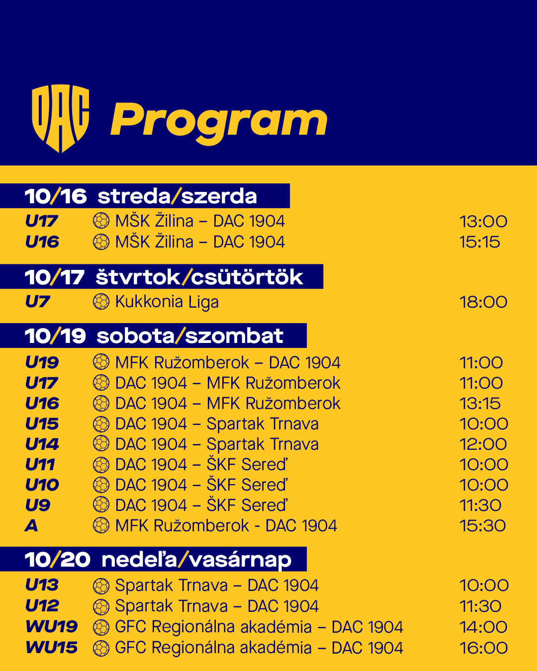 Pozrite si program našich tímov na tento týždeň – srdečne vás pozývame na tribúny! st 16.10.2024 Süli