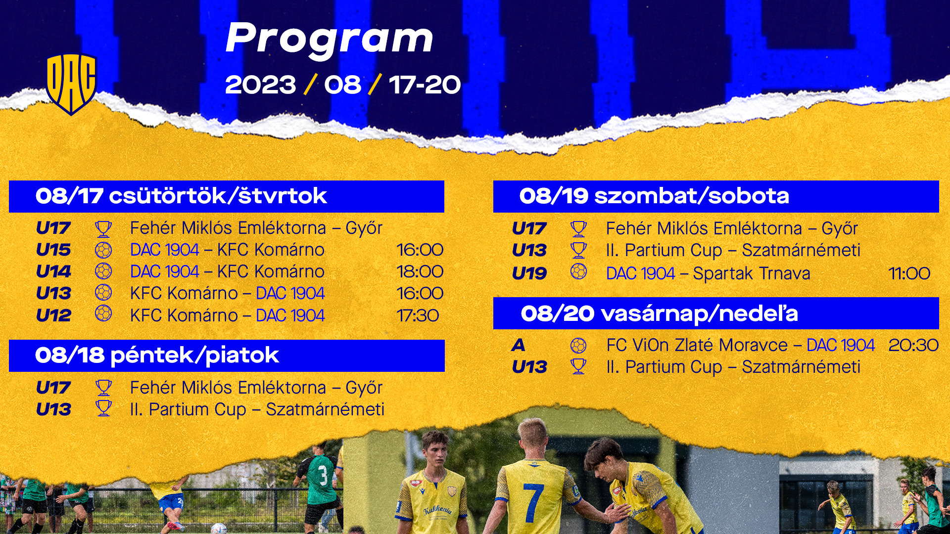 Prinášame vám kompletný program mládeže, v ktorom sú označené majstrovské zápasy a turnaje. Srdečne vás očakávame, fandime spolu!