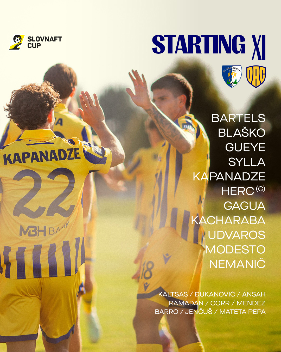 Bartels - Kapanadze, Kacharaba, Nemanič, Modesto - Blaško, Udvaros, Herc - Sylla, Gagua, Gueye