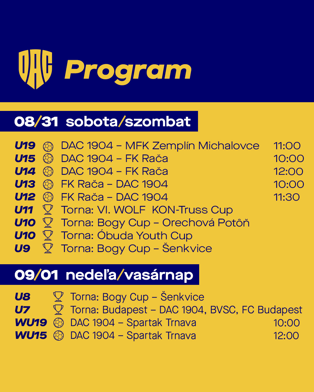Sárga-kék futballmenü a hétvégére. Hajrá DAC!