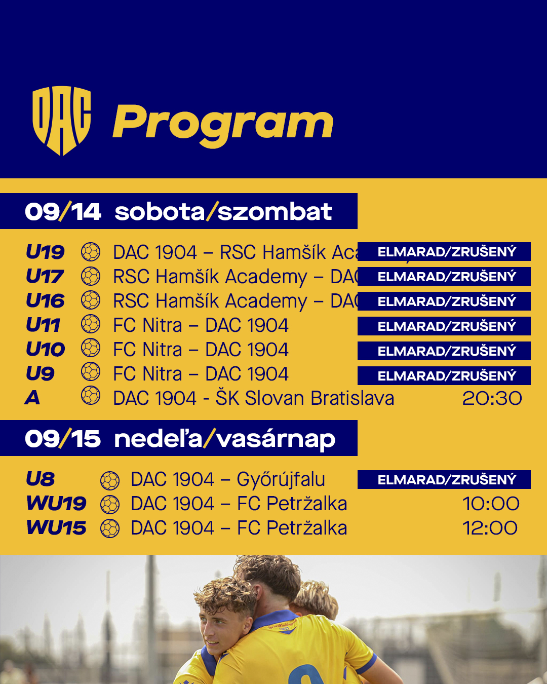 Tekintsék meg csapataink hétvégi programját - FIGYELEM: U8-U11 korosztályig a mérkőzések elhalasztva! pé 13.9.2024 Süli