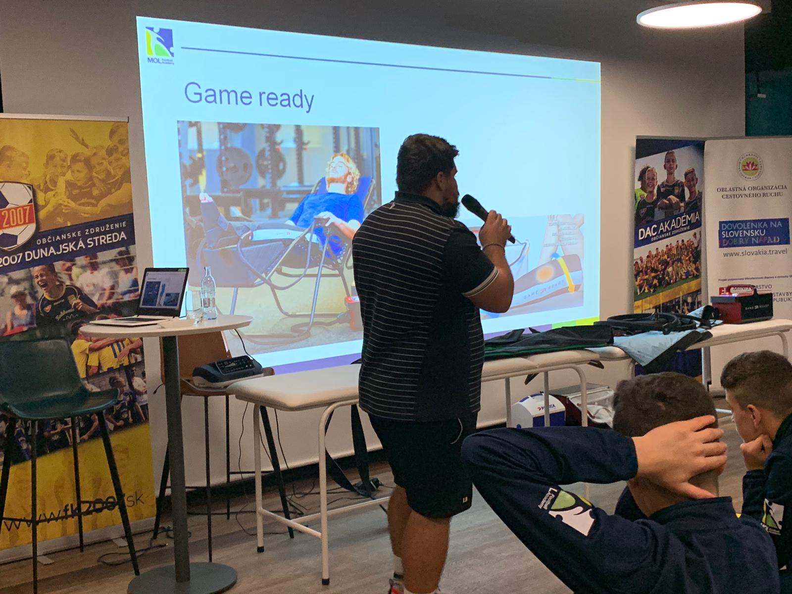 Az előadást követően Lukáš Hačkulič, a DAC A-csapatának fizioterapeutája workshop keretében hasznos sérülésmegelőzésre alkalmas gyakorlatokat szemléltetett. Olyan módszereket és mozgásgyakorlatokat mutatott be a játékosok bevonásával, melyekkel megelőzhetik a sérülések kialakulását. Különböző segédeszközöket, rehabilitációs eszközöket – pl. Game Ready, NormaTec, FlossBand – alkalmazott a helyszínen, melyekkel a gyakorlatokat a játékosok akár otthon vagy edzés előtt is elvégezhetnek saját védelmük és egészségük érdekében. „Fontosnak tartottuk, ezt az előadást és workshopot, mivel meggyőződésünk, hogy az egészséges étrend és életmód, valamint a sérülésmegelőzés alapfeltételei a fejlődés és a siker elérésének” – mondta Orbán Réka.