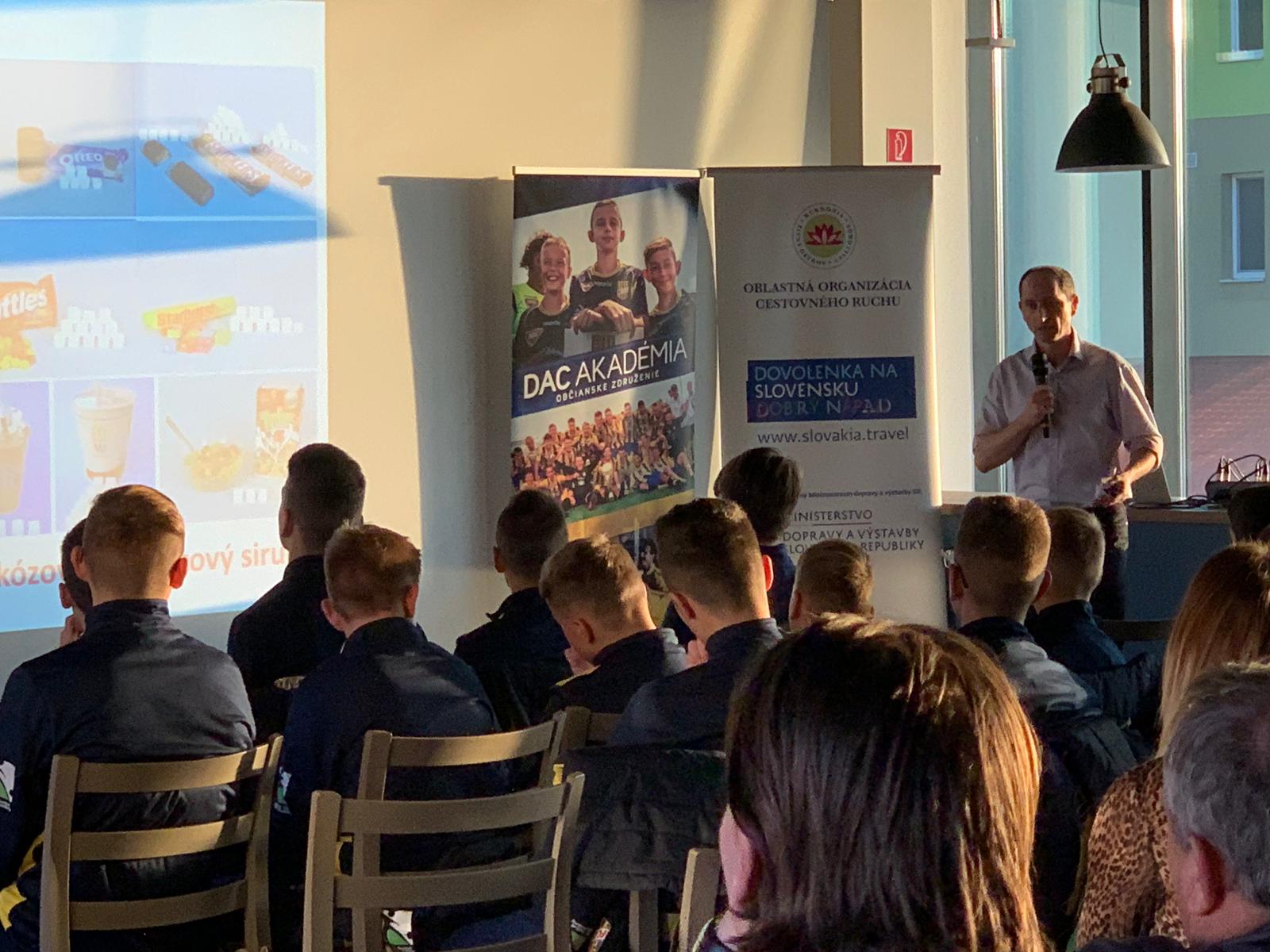 „Sedliak doktor úrnak köszönhetően egy fantasztikus előadást hallhattunk a sporttáplálkozásról – sportolóként mit és mikor szabad fogyasztani, hogyan kell táplálkozni edzések előtt és után, illetve a mérkőzések napján. A nagyon jól összeállított prezentáció érdekes és interaktív volt, így lekötötte a játékosok és a szülők figyelmét is” – nyilatkozta az előadással kapcsolatban Orbán Réka, a DAC 1904 és a MOL Football Academy egészségügyi koordinátora.