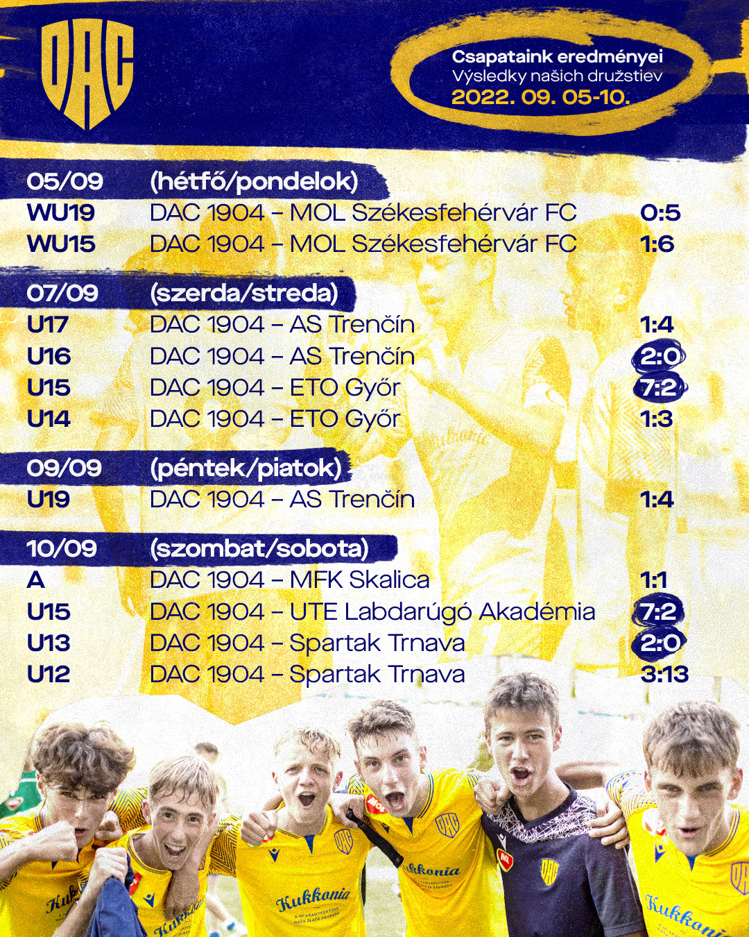 Csapataink múlt heti eredményei a DAC Hétről