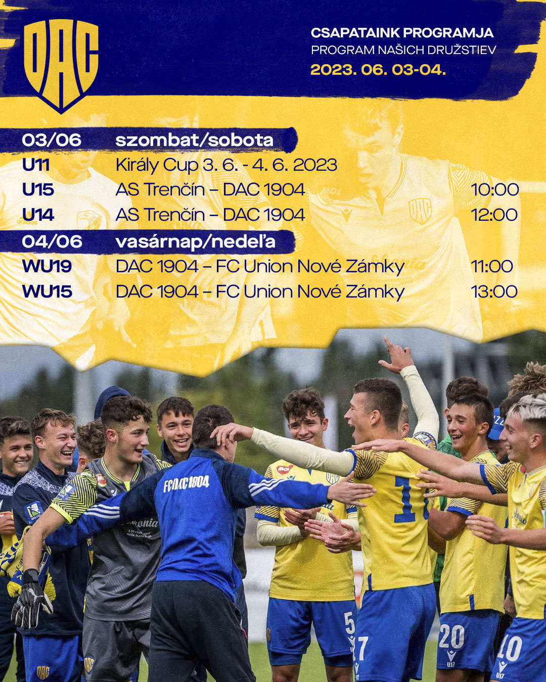 Ezen a hétvégén 4 bajnoki mérkőzés és egy nemzetközi torna vár csapatainkra. Az U14 és U15 Trencsénbe utazik szombaton, és az U11-esek a szombathelyi Király Cup-on szerepelnek az egész hétvége folyamán. Lányaink múlt heti bravúros sikereiket pedig vasárnap hazai pályán is megduplázhatják.