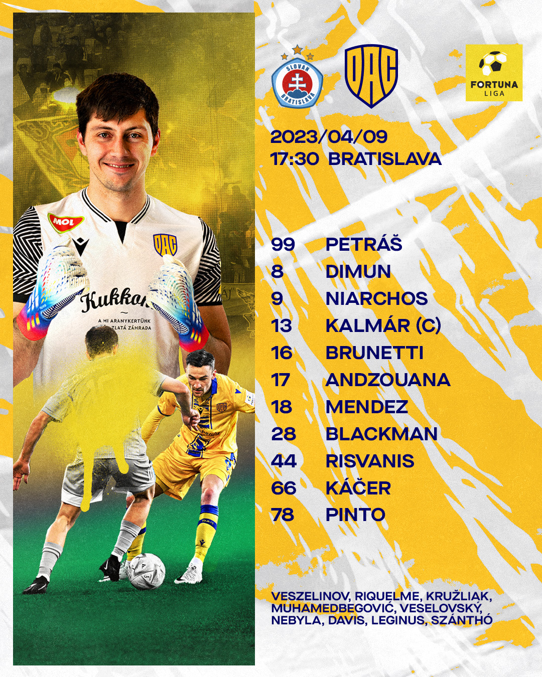 Ezt a kezdőcsapatot küldi pályára Adrian Guľa vezetőedző a húsvéti rangadón. Hajrá DAC!