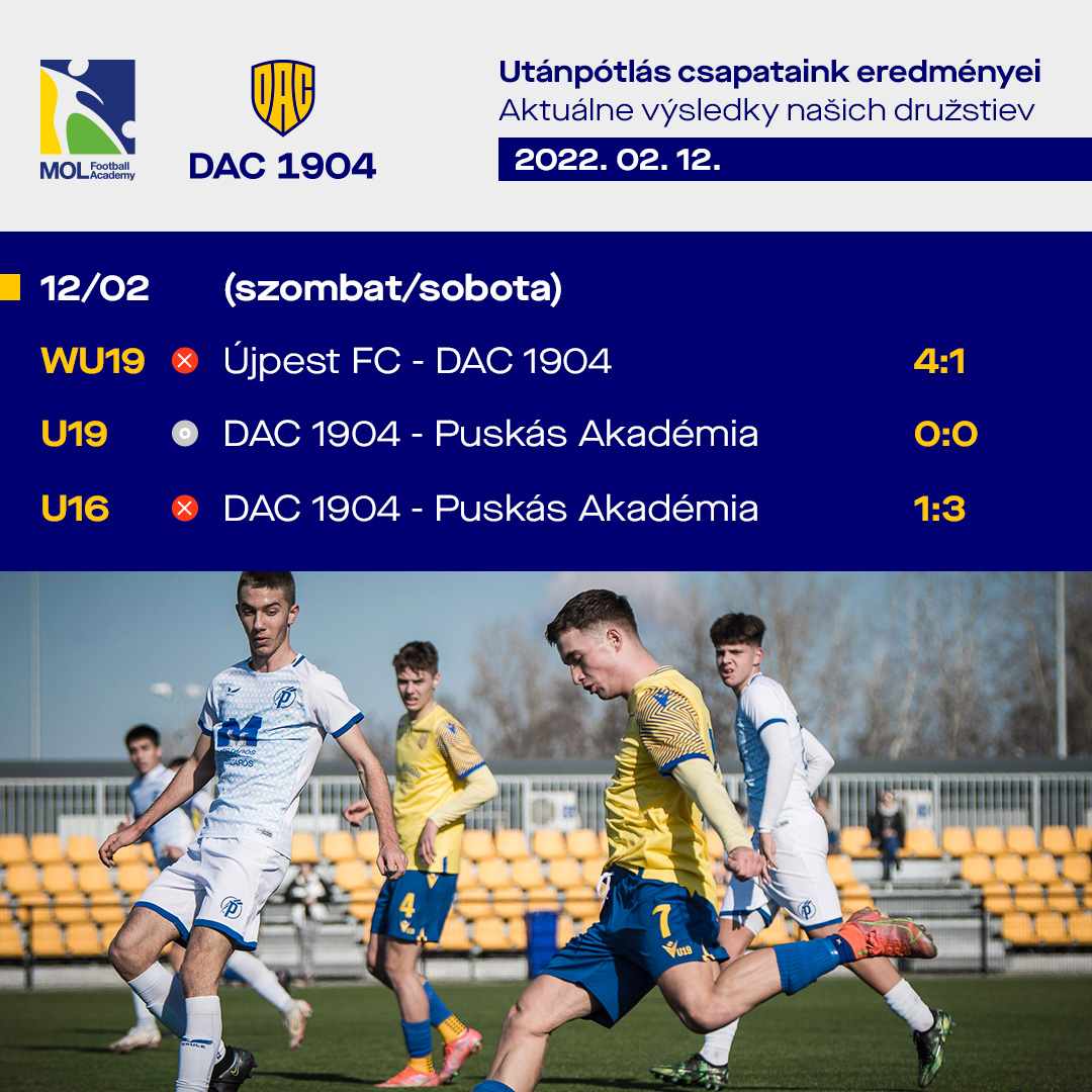Dorastenci DAC-u aj túto sobotu odohrali prípravné zápasy. po 14.2.2022 Ján Ficza Výsledky vo vekových kategóriách pod U12 nevyhlasujú.