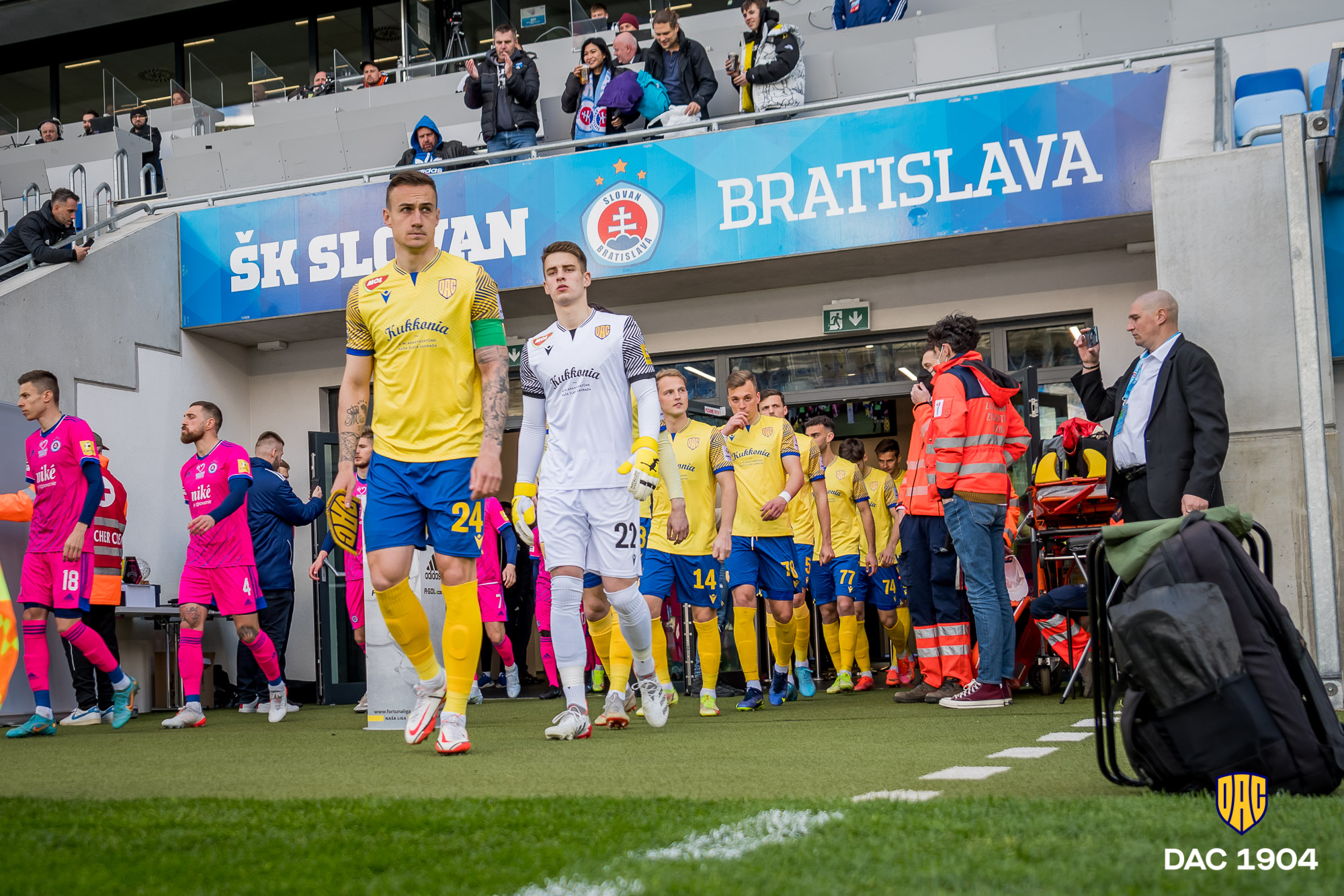 „Myslím si, že v prvom polčase sme podali slušný výkon, boli sme vyrovnaným súperom Slovana. Možno sme hrali aj lepšie ako domáci a vypracovali sme si aj nejaké príležitosti. Škoda, že sme inkasovali v podstate zo stredu ihriska po dobre trafenej strele. Počas celého zápasu sme mali situácie, ktoré sme mali zvládnuť lepšie, či už ide o finálnu prihrávku alebo riešenie v pokutovom území súpera. Druhý gól krátko po návrate z kabín prakticky rozhodol, Slovan si už svoje vedenie ustrážil. Niečo sme si povedali v šatni počas prestávky a po strate lopty sme hneď dostali gól. Potom to už bolo ťažké, ale aj tak sme mali ešte niekoľko príležitostí na skórovanie. Hralo sa v dobrej atmosfére, teší nás, že sa ľudia vracajú na štadióny. Som však sklamaný, že sme nezískali aspoň bod,“ vyhlásil po včerajšom derby Slovan-DAC (3:1) kapitán nášho mužstva Dominik Kružliak, ktorý sa vzápätí vyjadril aj k cieľom pre zvyšok sezóny. „Chceme si vybojovať účasť v európskych pohároch. Už sa asi ťažko dostaneme na tretie miesto, ten bodový odstup je veľmi veľký. Dúfame však, že sa bude hrať baráž a že ju zvládneme. Aj preto bude dôležité udržať si štvrtú priečku, aby sme v nej nastúpili dvakrát doma.“