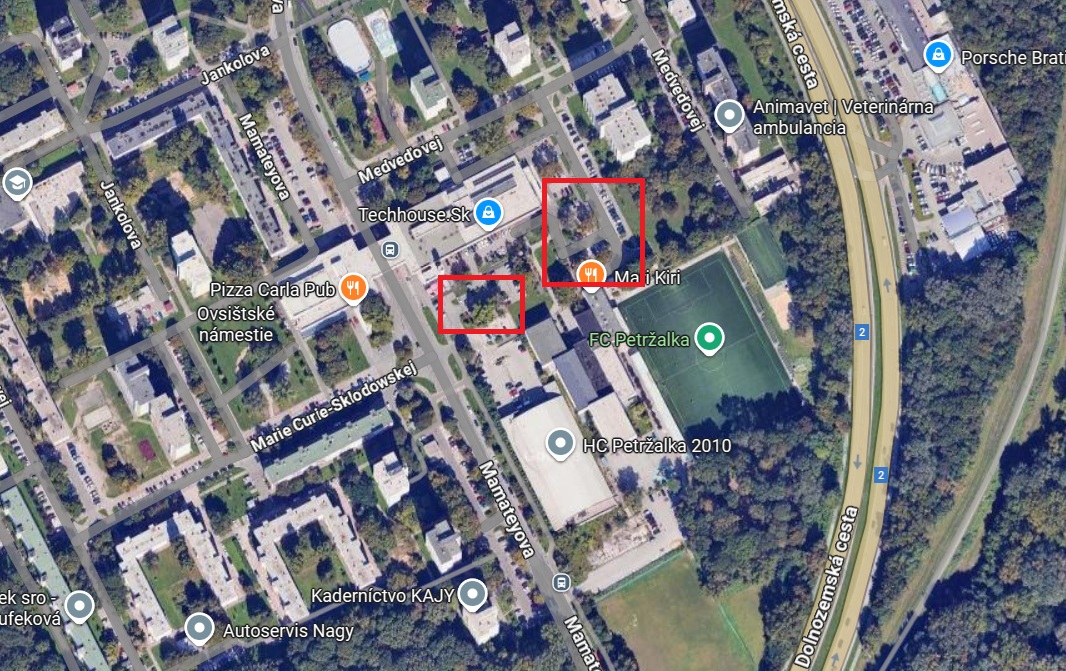 Parkovanie bude možné v priestoroch vyznačených na mapke: