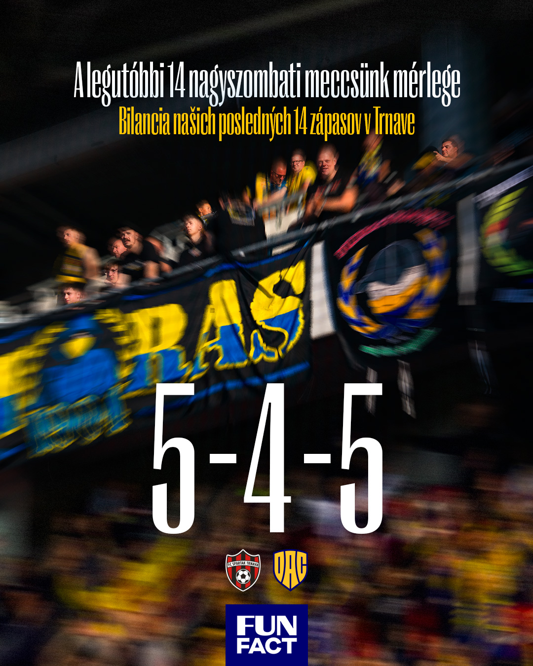 Pri našej prvej návšteve u súpera v tejto sezóne sa zrodilo historicky najvyššie víťazstvo DAC-u v Trnave: v 6. kole základnej časti sme na štadióne Antona Malatinského zvíťazili 3:0. V decembri sme potom pridali domáci triumf 3:1, pričom hostia znižovali až v 80. min.