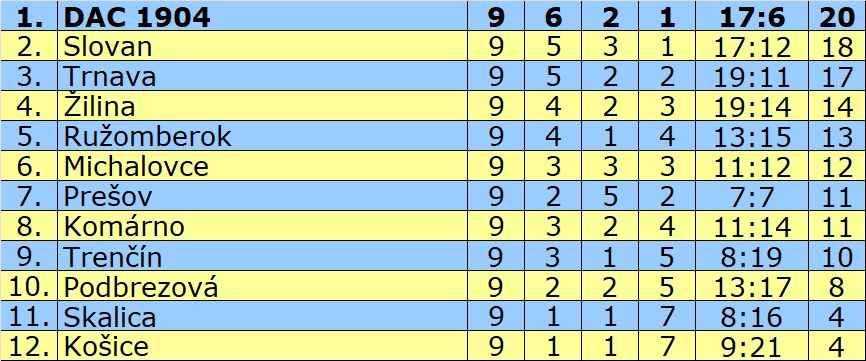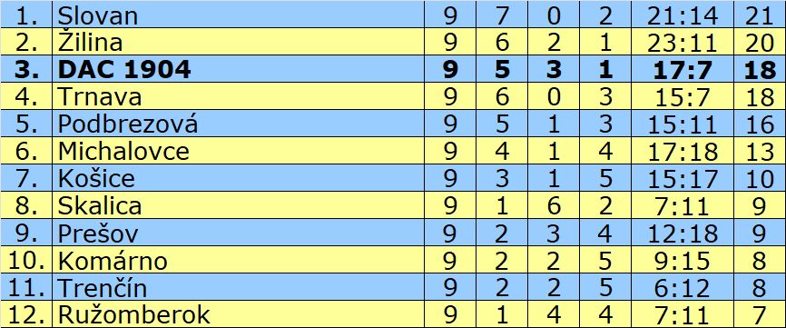 Štvrtýkrát v histórii zimuje DAC na striebornej pozícii. Prvú časť súťažného ročníka si zhodnotíme aj cez čísla a štatistiky. Na úvod nášho tradičného seriálu sa pozrieme na ligové tabuľky.