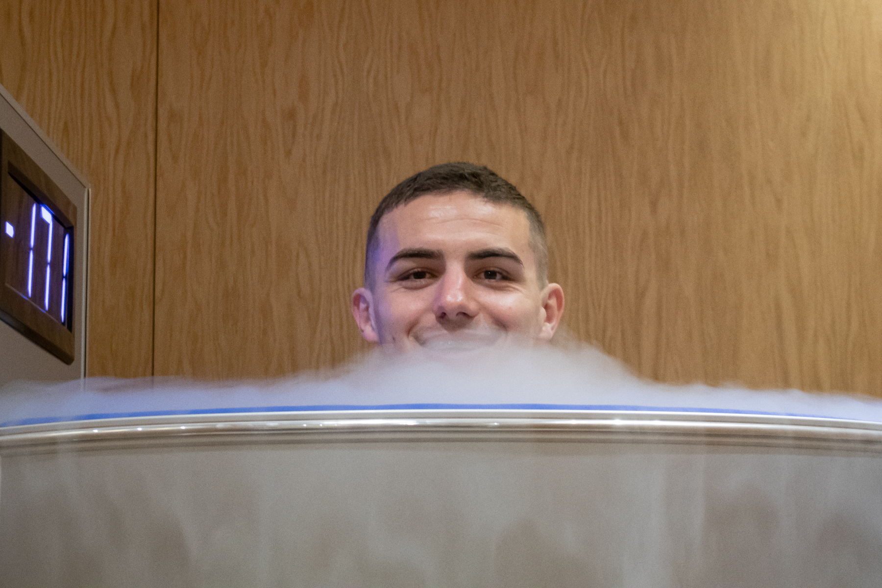 Hráči sa postupne v dvojminútových intervaloch vystriedali v kapsule, v ktorej minimálna teplota dosiahla až -190 stupňov Celzia. Niektorým doslova primrzol úsmev na tvár, ale všetci túto skúšku chlapsky zvládli. Po snehu sme si dnes teda užili aj ľad a mráz.