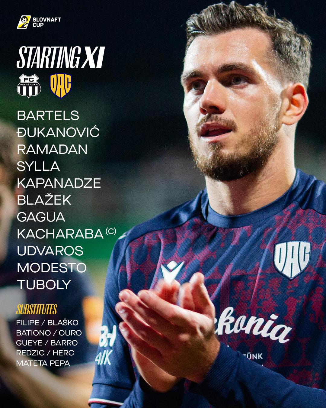 Bartels - Kapanadze, Kacharaba, Blažek, Modesto - Udvaros, Tuboly, Ramadan - Sylla, Gagua, Djukanović