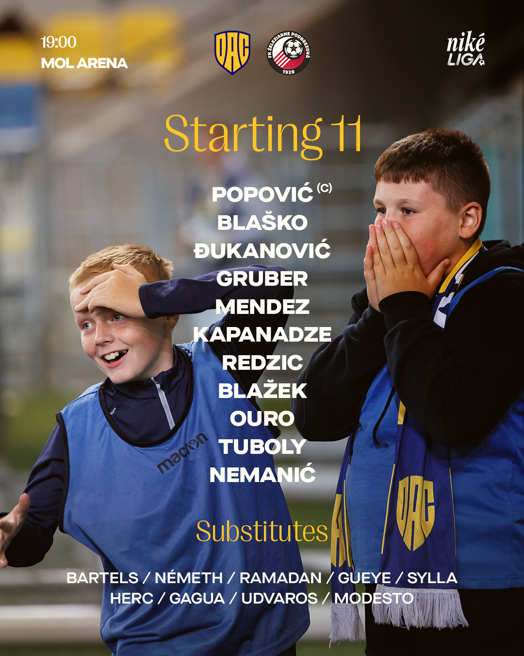 Popović - Kapanadze, Blažek, Nemanič, Mendez - Gruber, Tuboly, Ouro - Redzic, Djukanović, Blaško