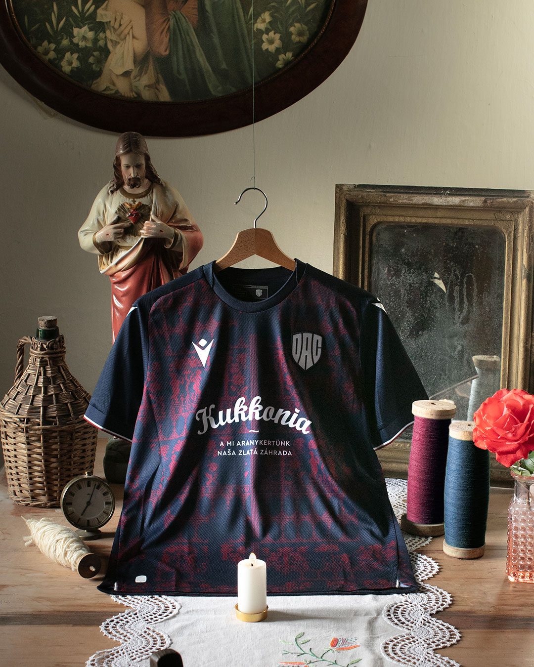 Motív Adama a Evy, ktorý je do tejto textílie vyšitý, symbolizuje vieru našich predkov. Tento obrus sa používal výhradne pri výnimočných príležitostiach – pri sviatkoch, ktoré sa svojou dôležitosťou vymykali bežným dňom. Presne tak, ako sú pre nás zápasové dni – vždy výnimočné a slávnostné.