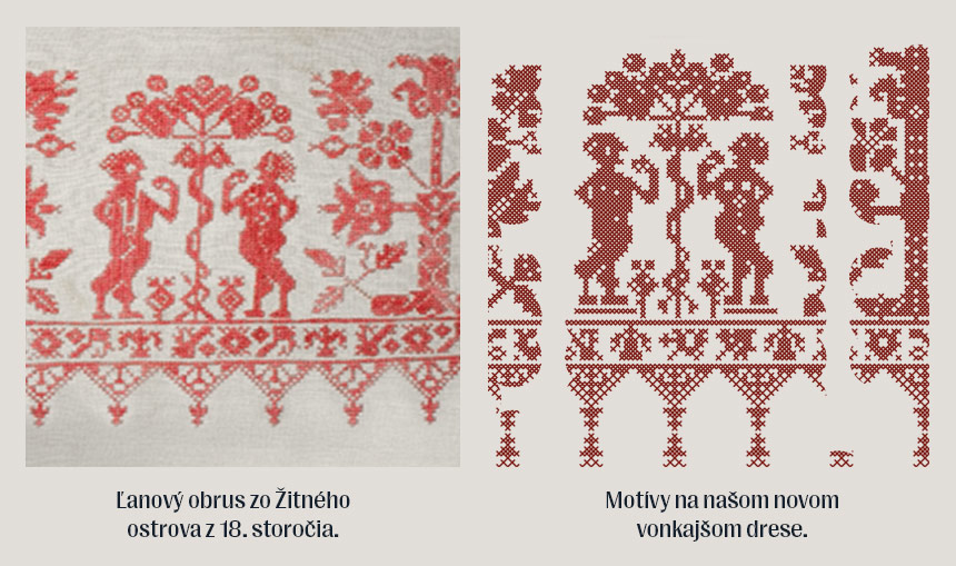 V Maďarskom etnografickom múzeu v Budapešti sa nachádza ľanový obrus z konca 18. storočia, pochádzajúci práve z tejto oblasti. Jeho výšivky sa dnes objavujú aj na našom novom drese.